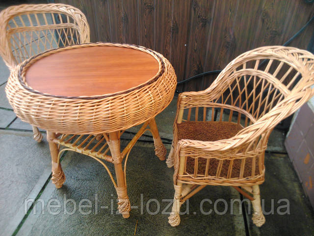 Круглий маленький журнальний столик із лози та два дитячі крісла. Це чудовий подарунок для дітей. Насолоджуйтеся життям!