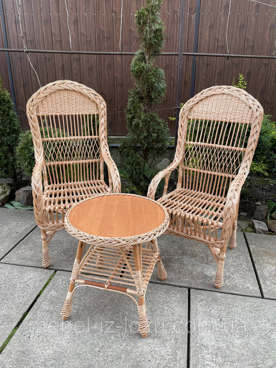 Плетені меблі з лози. Склад набору: стіл + 2 крісла. Можливі індивідуальні замовлення. Плетені меблі для ресторанів і готелів і кафе.